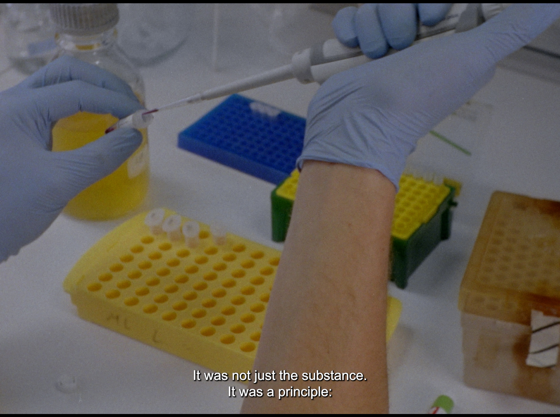 The film operates as a self-reflexive history of both industry and image. IG Farben’s subsidiary, Agfa, developed the revolutionary Agfacolor Neu color film, a propaganda tool that, as the narrator notes, was deliberately calibrated to the red of the Nazi flag. Evron’s footage was captured on modern celluloid descended from the seized Agfacolor patents. The film ultimately presents the dandelion’s ghostly presence as an enduring index of absence, exploring a haunting chemical inheritance that connects the deep history of the soil to the very medium of cinema.